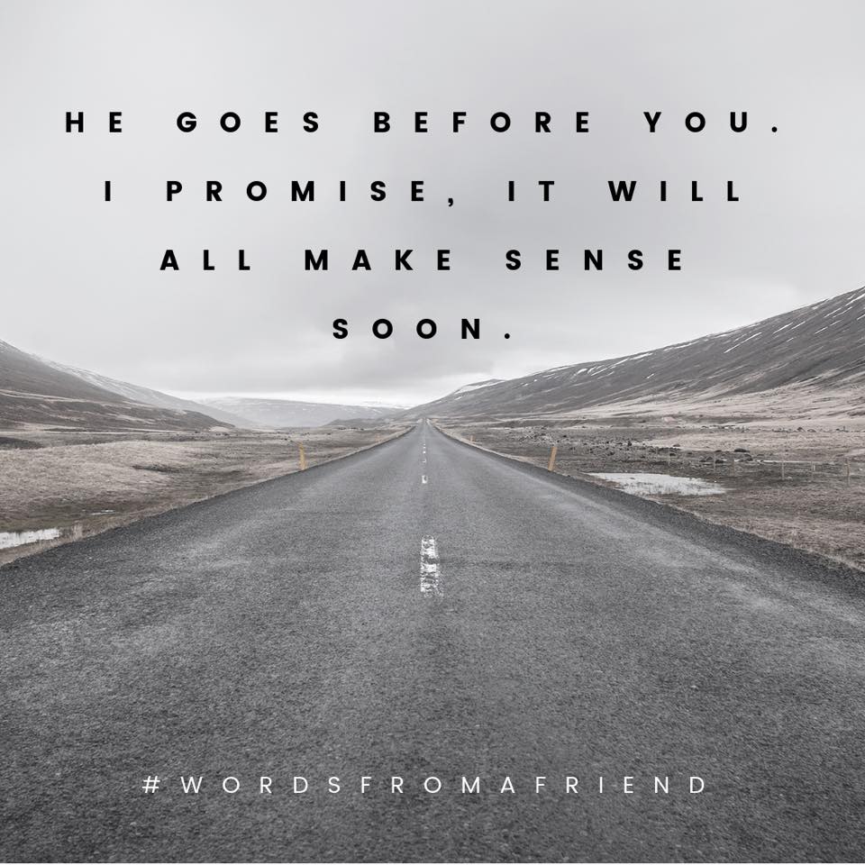 God is going before you today friend. I promise, it will all make sense soon.
